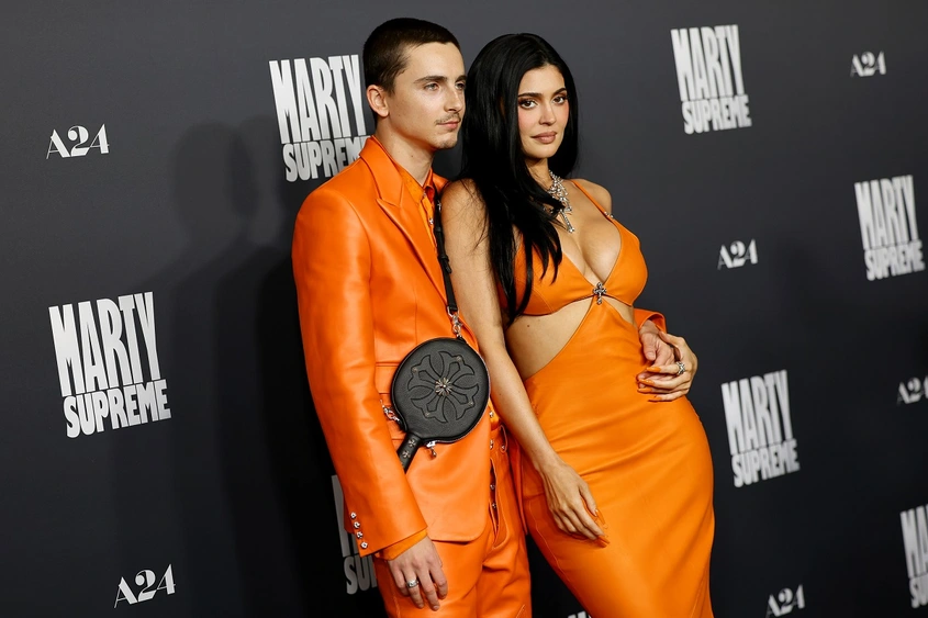 Дуото се появи в идентични копия на неоново-оранжевите екипи от Chrome Hearts, с които Тимъти Шаламе и Кайли Дженър предизвикаха фурор на премиерата на ''Marty Supreme'' в Лос Анджелис миналия месец. Стилистът Ерика Д. Шварц е пресъздала визиите до последния детайл – включително обувките Timbaland на Шаламе, кожения калъф за хилка за пинг-понг и масивния кръст на Кайли.
