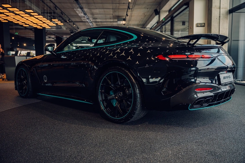 Моделът се отличава със специално лаково покритие Obsidian Black Metallic, ръчно рисуван звезден мотив и акценти в цветовете на PETRONAS, както и с елементи от висококачествен карбон и 21-инчови AMG ковани джанти.