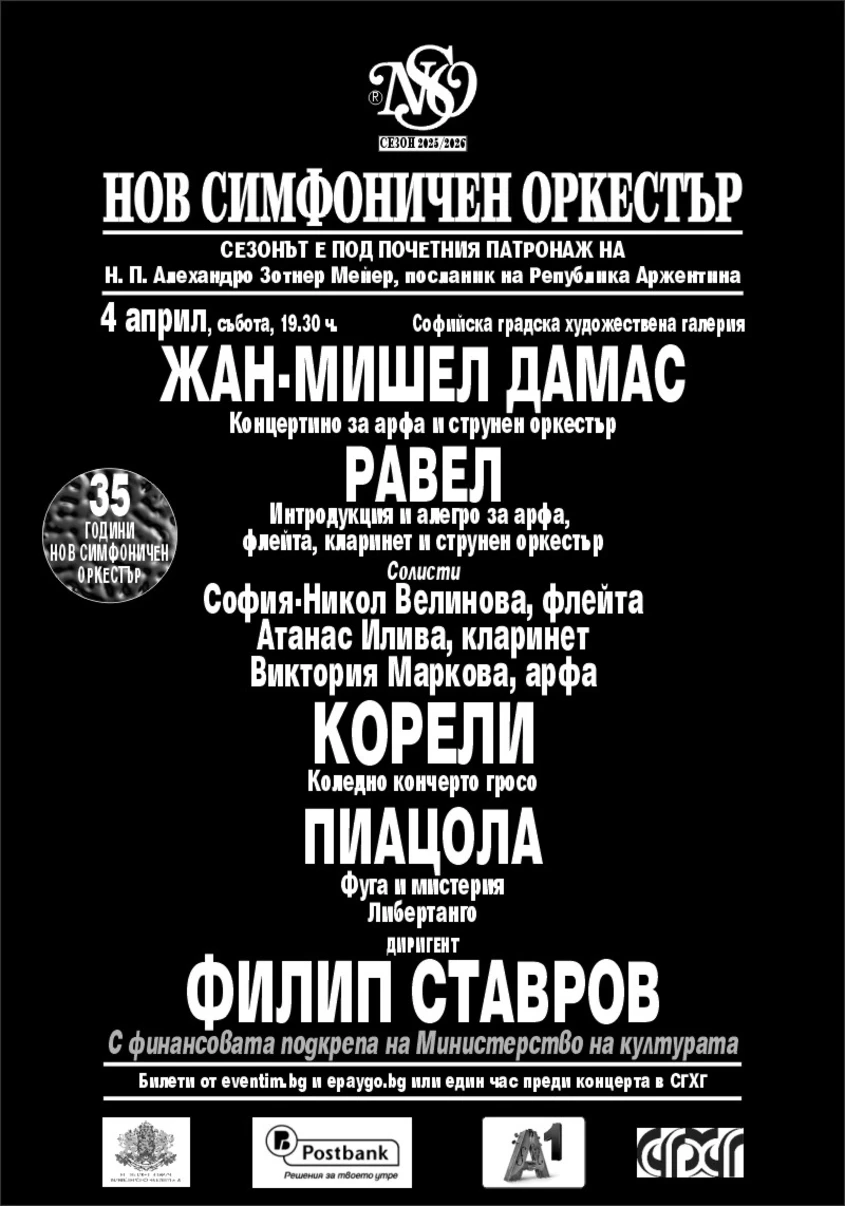 Събитието ще предложи на публиката изтънчено музикално преживяване, в което деликатните тембри на арфата, флейтата и кларинета ще се преплетат с богатия звук на струнния ансамбъл. Контрастите между стилове и епохи създават динамична и въздействаща концертна вечер.