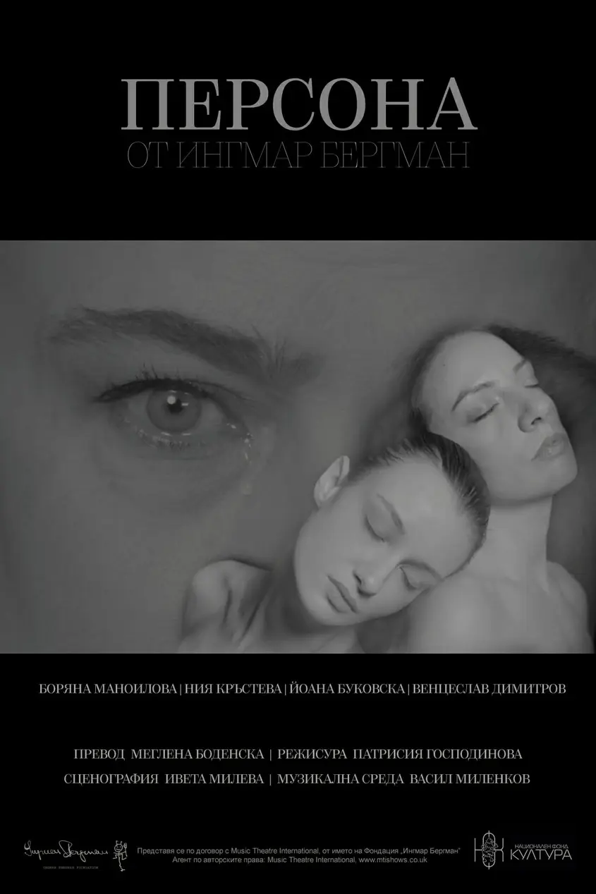 „Персона“ е шведски филм от 1966 на режисьора Ингмар Бергман по негов собствен сценарий – едно от най-енигматичните и емблематични негови произведения. Сюжетът разкрива сложните взаимоотношения между Елисабет - актриса, която замлъква в опит да намери автентична връзка със себе си и със света отвъд социалните роли и прилежащите им маски и Алма - медицинска сестра, назначена за нейна болногледачка. В сценичната адаптация взаимоотношенията между Алма и Елисабет се разгръщат като архетипна психична борба между “персона” и “сянка” в границите на една дезинтегрирана личност, разкъсана между говорещото и мълчащото, между социално приетото и бунта, между маската и потисната истина. „Персона” е маската, която носим пред света, а спектакълът се занимава с това, което остава скрито под нея.