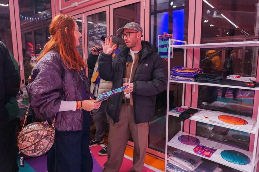 Баскетболът тук не е спорт, а система от знаци – поле за сблъсък между контрол и импровизация. GLOW използва площадката като платно, а изложбата – като архив на движение.