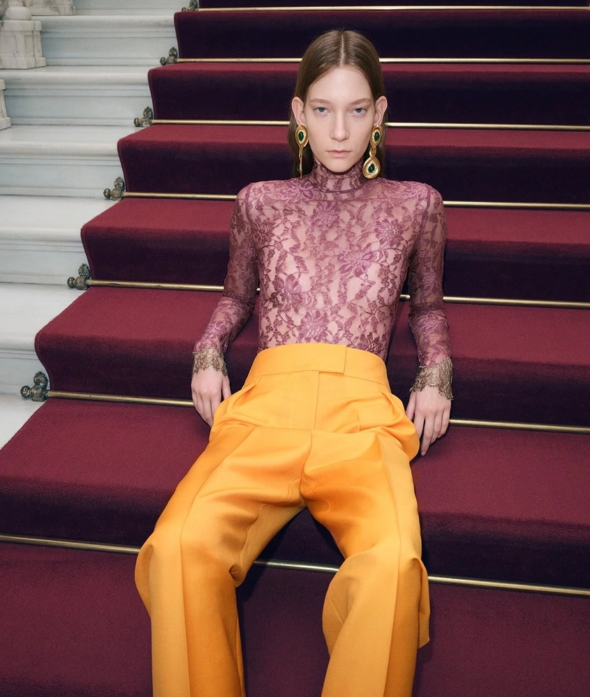 Простотата и Алесандро Микеле са непознати в едно и също изречение. За Микеле пътуването от точка А до точка Б обикновено включва живописен обход, криволичейки през безброй възможности по пътя. Неговото виждане за модната къща Valentino е толкова противоречиво, колкото и завладяващо; той е критикуван за това, че внася прекалено много от себе си и от чувствителността на Gucci, която някога е защитавал, в марка, чиято репутация за непокътната, буржоазна елегантност е била почти свещена.