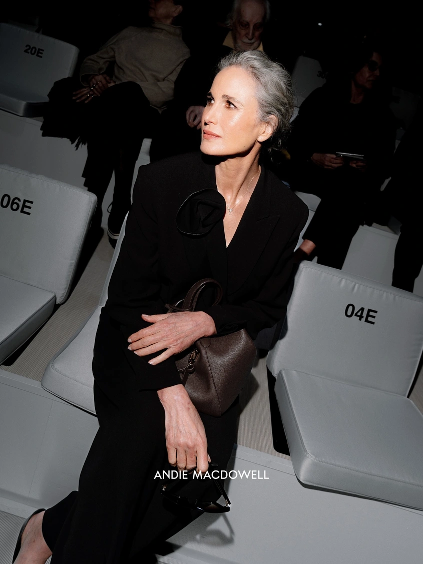 Колекцията е дестилирана. Пречистена. Силвана е премахнала шапките, излишните бижута и слоевете, които тежат. Оставила е същината: флуидните костюми от сиви тъкани, панталоните с широки крачоли, които докосват пода, и палтата със силни рамене. Но в тези рамене вече няма мъжка агресия, а нещо друго - женска прецизност. Сивото - иконичният цвят на Армани - отваря пътя, но бордото е това, което превзема подиума. То не е натрапчиво, разлива се прогресивно, докато не се превърне в център. Един цвят, който бих описала като нощно синьо, също се открояваше.