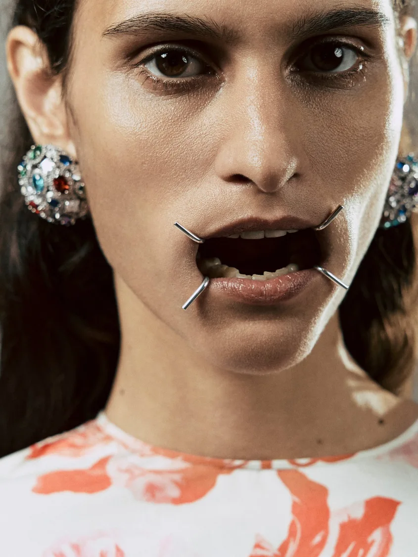 Разтворителите за уста в колекцията на Глен Мартенс за Maison Margiela Spring Summer 2026 надхвърлят простото повторение на кодовете на къщата. Те са интелигентен, макар и зловещ, хибрид между естетиката на Маржела, театралността на Галиано и саркастичния, поп-културен гений на самия Мартенс.