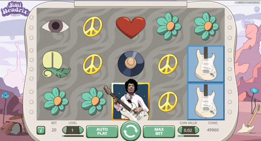 Този слот от NetEnt е ода за психеделичния рок. Фонът на играта е в духа на 60-те години: меки цветове, плавни анимации, китари и визуални ефекти. Заедно те пресъздават атмосферата на Уудсток. Саундтракът е от хитовете на самия Хендрикс. Те звучат, както по време на основния геймплей, така и в бонус кръговете, и обозначават големи печалби.