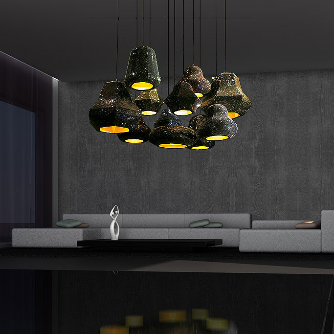 Swarowski sparkle shady - Това искрящо бижу на Сваровски е проектирано от испанския дизайнер Джейм Хайън. Направен от различни блестящи кристали, които могат да се пренареждат по желания начин, полилеят е истински шедьовър в областта на осветителните тела. Красиво обработените повърхности на скъпоценните камъни са неземно красиви, дори и когато осветлението е изключено.