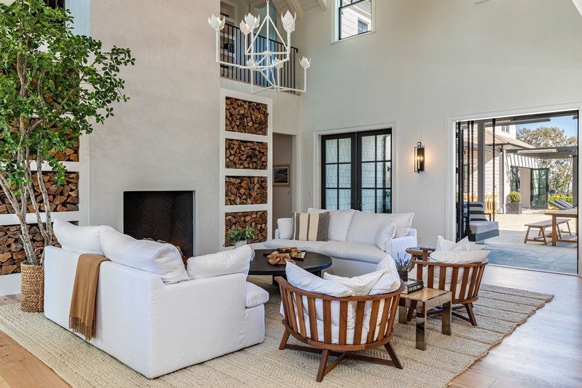 Толкова уютна стая - всичко, от което се нуждаете, е добра книга и чаша вино. Камината и вградените рафтове, които перфектно съхраняват цялото дърво, правят пространството още по-привлекателно. Освен това двойните врати не само позволяват влизането на много естествена светлина, но можете да се насладите на красотата на открито, докато сте вътре.