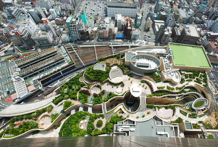 Огромният мол Namba Parks, намиращ се в Осака, Япония, не само впечатлява с разнообразието от магазини и места за забавление и хранене, но и с нетипичната си архитектура, в която акцент е зеленият покрив, представляващ градина на осем нива.