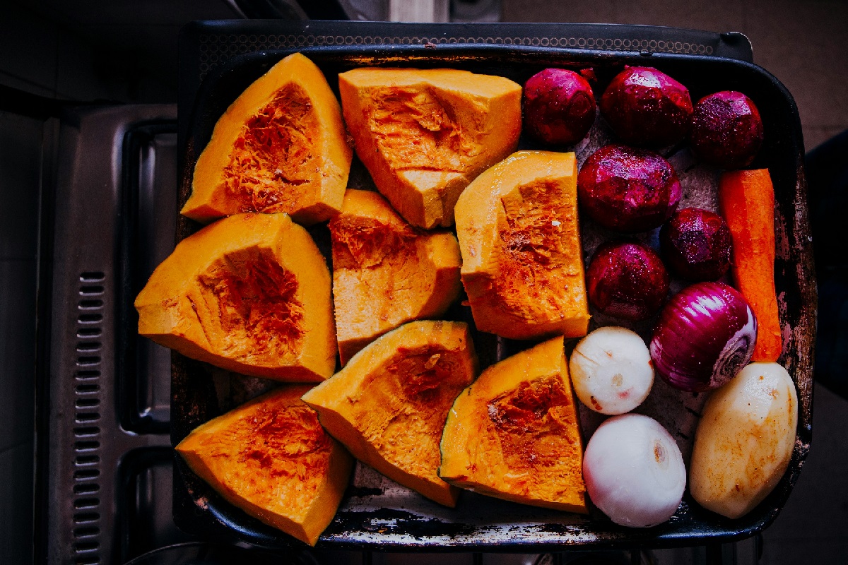 Изчистваме и нарязваме картофите и тиквата на кръгли филийки, след което ги варим за няколко минути в подсолена вода, но внимаваме да не се разпаднат. Когато омекнат, изваждаме и прецеждаме. В тиган с масло задушаваме спанака, заедно с една връзка пресен лук. В купа смесваме яйцата, крема сиренето и задушения спанак, добавяме подправки – сол, черен пипер, червен пипер, мащерка и магданоз.