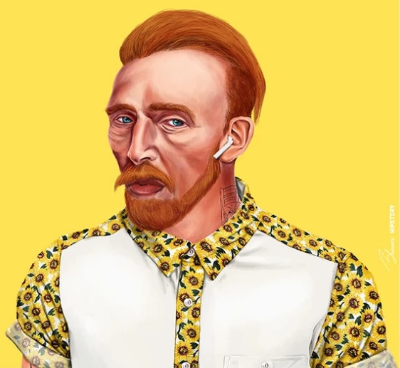 Графичният дизайнер продължава да съживява емблематични фигури в изкуството, науката и политиката, като пречупва образа им през призмата на културното течение, наречено "хипстър".