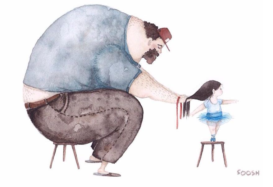 Готови сме да се разтопим от умиление, гледайки тези сладки илюстрации, които показват огромната любов на бащата към неговото малко момиченце. Те са дело на младата художничка Снежана Суш (Snezhana Soosh), която по прекрасен начин показва специалната връзка между баща и дъщеря.