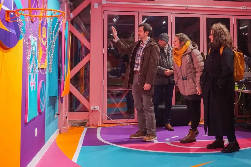 Баскетболът тук не е спорт, а система от знаци – поле за сблъсък между контрол и импровизация. GLOW използва площадката като платно, а изложбата – като архив на движение.
