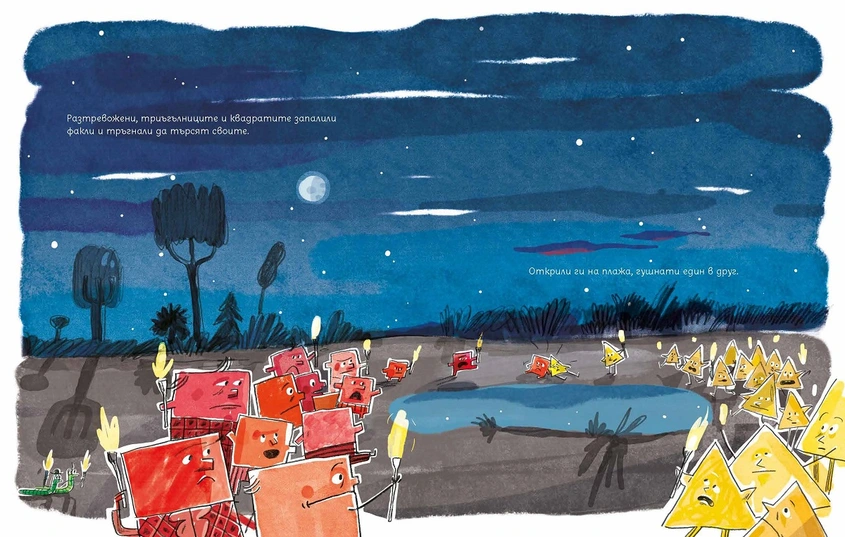 „Идеята ми е покрай ученето на геометричните фигури в съзнанието на децата да останат и други послания. А именно – че привидната различност на „другия“ не го прави нещо зло и враждебно“, споделя авторът и допълва, че различията могат да бъдат различни – възрастови, полови, физически, езикови и т.н., но това не променя факта, че всеки срещу нас може да бъде партньор и източник на полезност, стига да търсим това в него, а не да гледаме различността“.