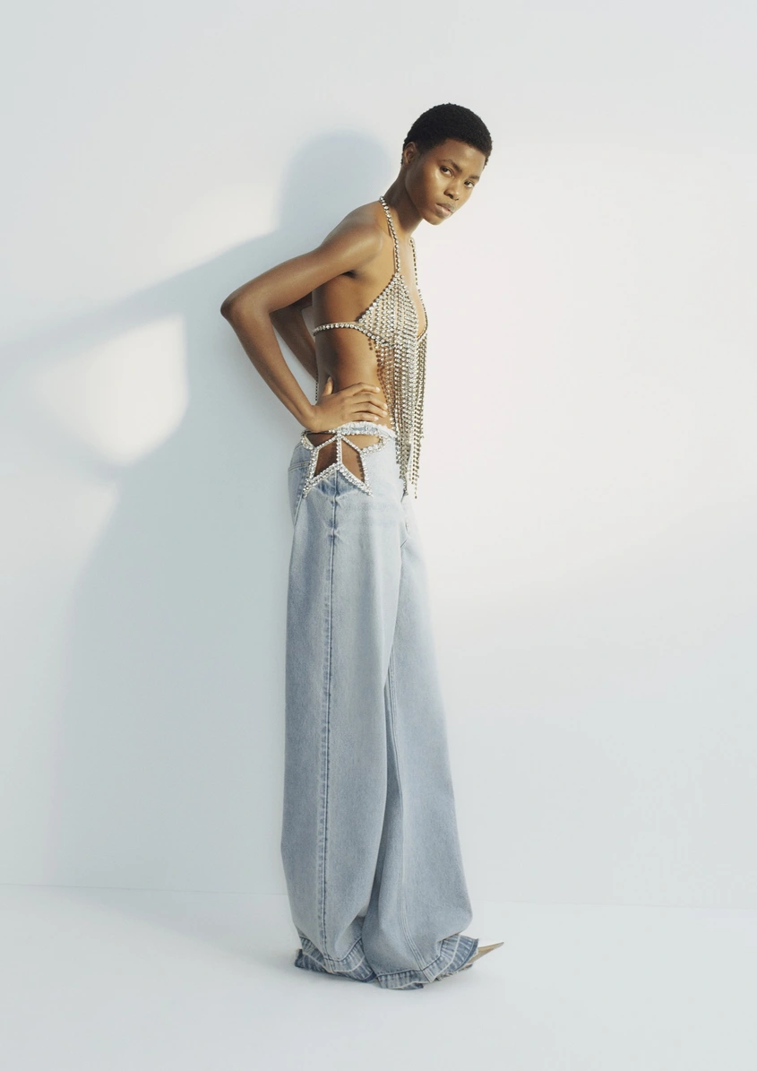 Сред акцентите в колекцията се открояват рипсени плетени рокли и топове с верижка около деколтето, както и дълга бяла рокля с наметало-ръкав, който плавно преминава в подгъва и оформя ефектен, обгръщащ силует. Колекцията включва още бляскави вечерни визии, отделни елементи и деним, както и мрежести рокли и топове с характерен архивен десен.