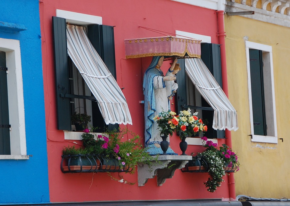 Първото нещо, което ти приковава вниманието в Бурано е върволицата от многобройни плътно прилепени една до друга къщички, боядисани във всевъзможни наситени цветове, с балкони, отрупани с цветя. Дотук нищо кой знае колко необичайно, но тази пъстрота има конкретно обяснение.